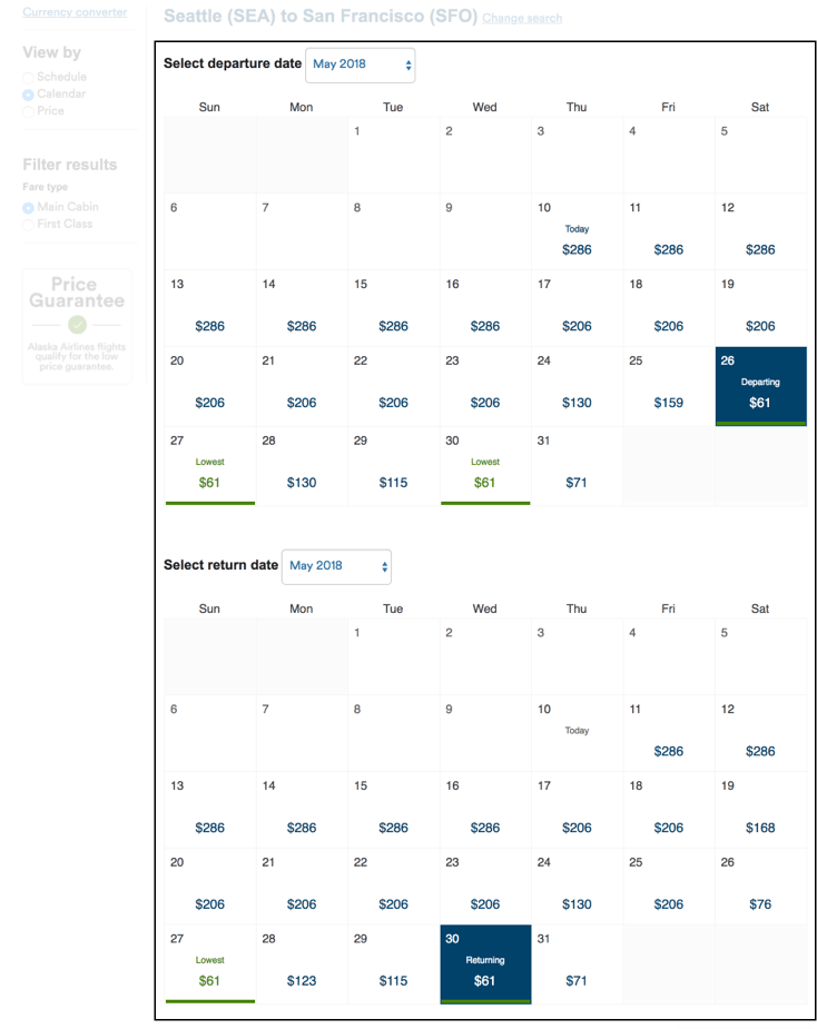 Alaska Airlines Reservations Low Fare Calendar Talya Viviene