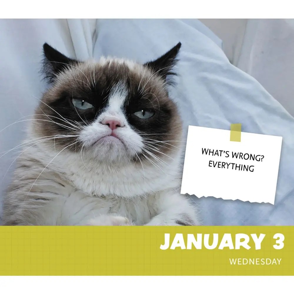 This calendar is filled with quintessential grumpy cat portraits and memes. Acco brands, grumpy cat 2024 desk. Get a daily dose of this curmudgeonly cat with this fun, desktop daily calendar that offers cranky observations, spite, sarcasm and a bitter wit to. Celebrate a whole year of charming sass, furrowed whiskers, and surly snapshots of the one and only grumpy.