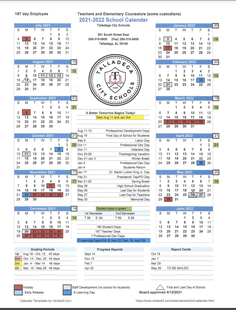 20212022 School Calendar Evelyn D. Houston Elementary School