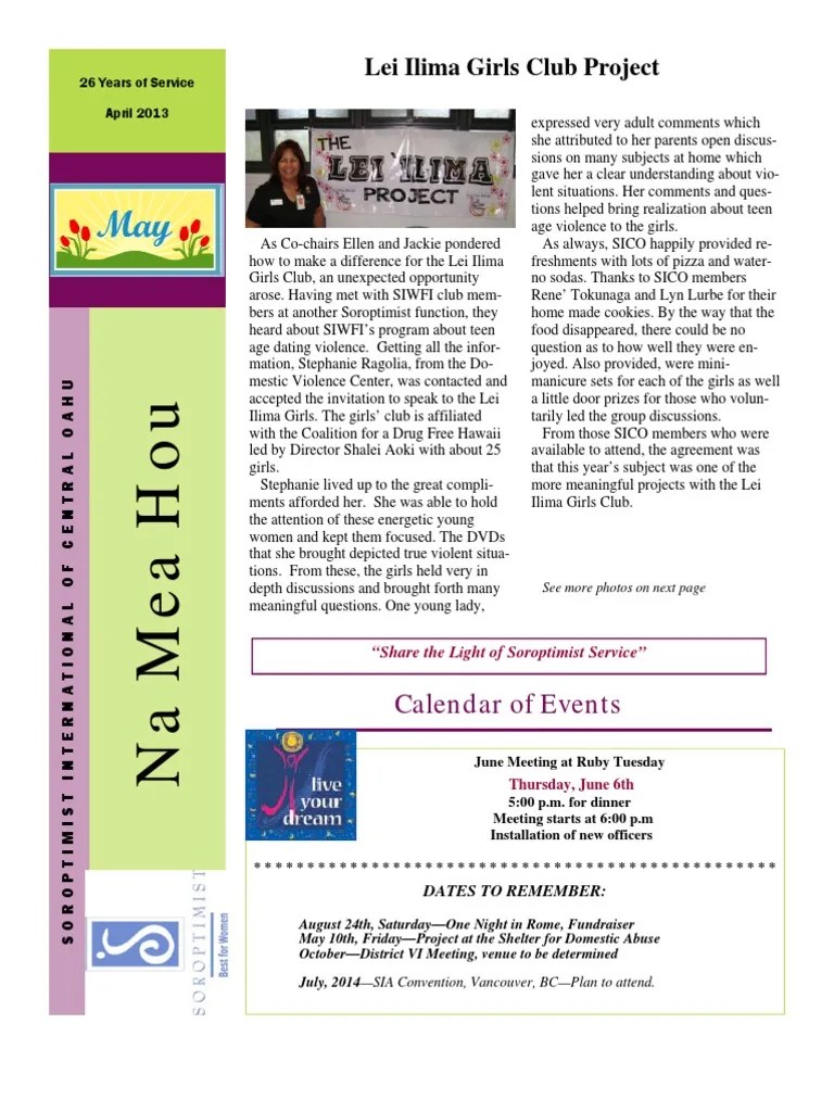 Lei Ilima Girls Club Project Calendar of Events PDF Business