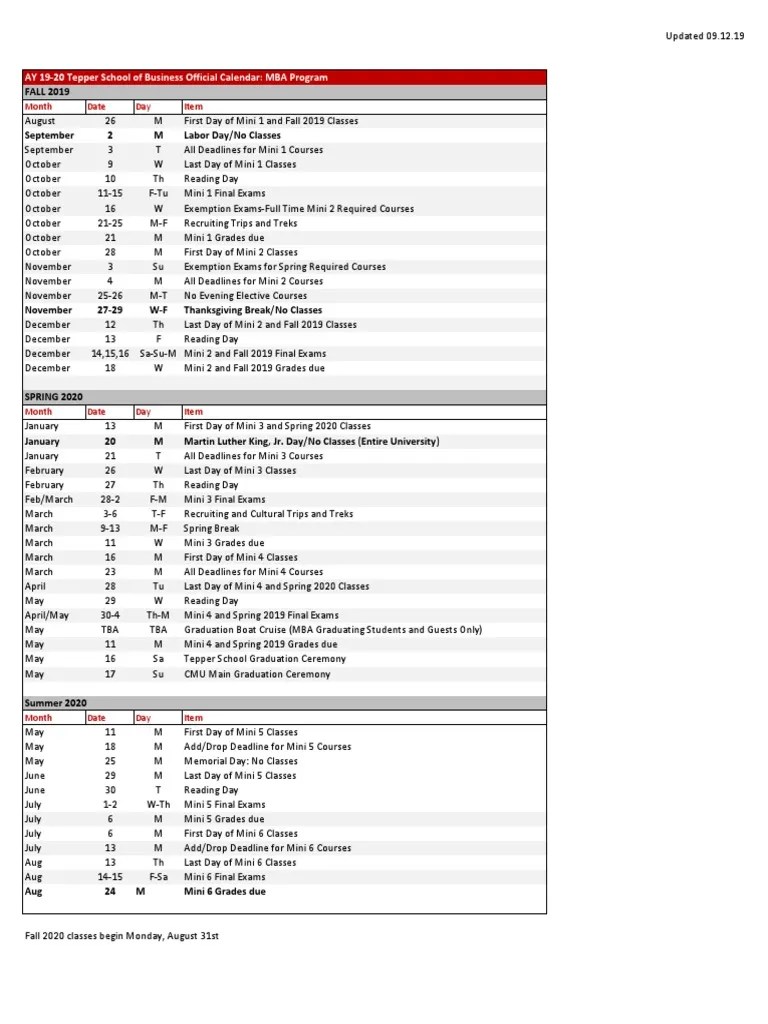 19 20 Mba Academic Calendars Download Free PDF Academia Learning