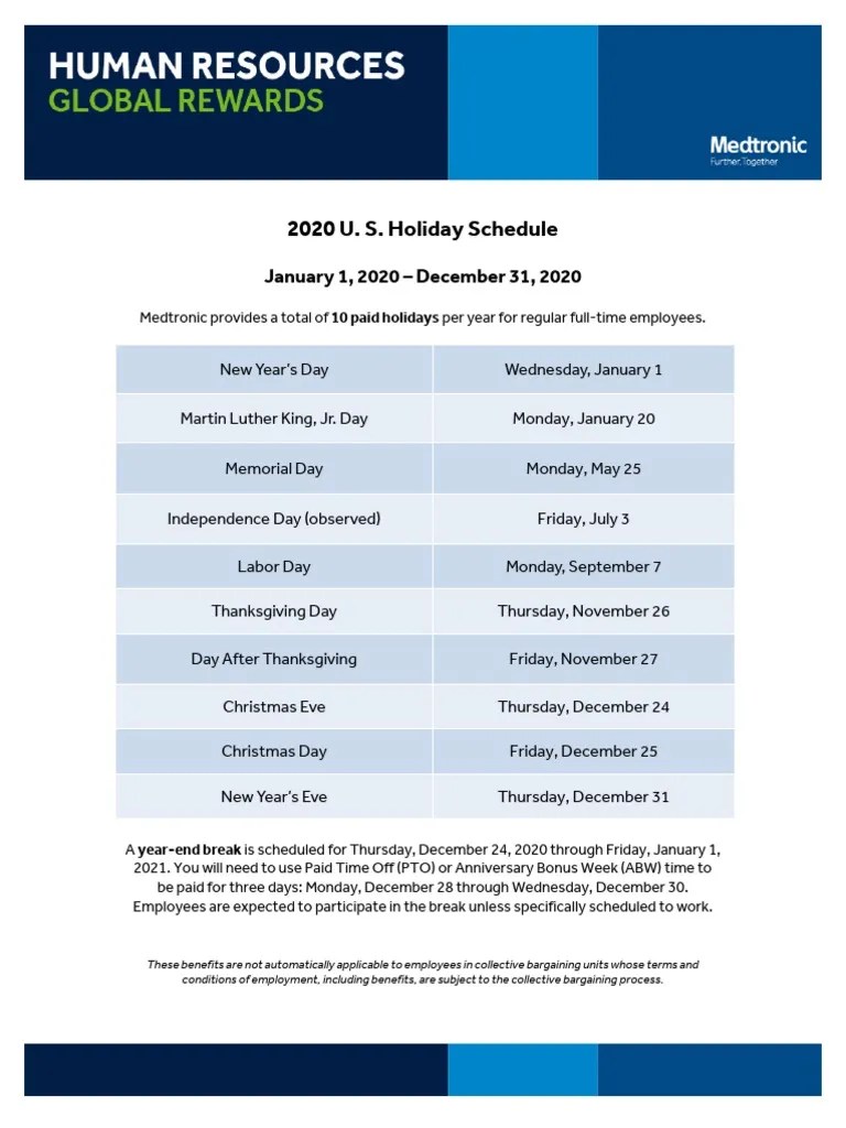 Medtronic Paid Holidays, Reported Anonymously By Medtronic.