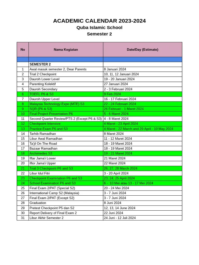 Academic Calendar 23_24 Quba Semester 2 PDF