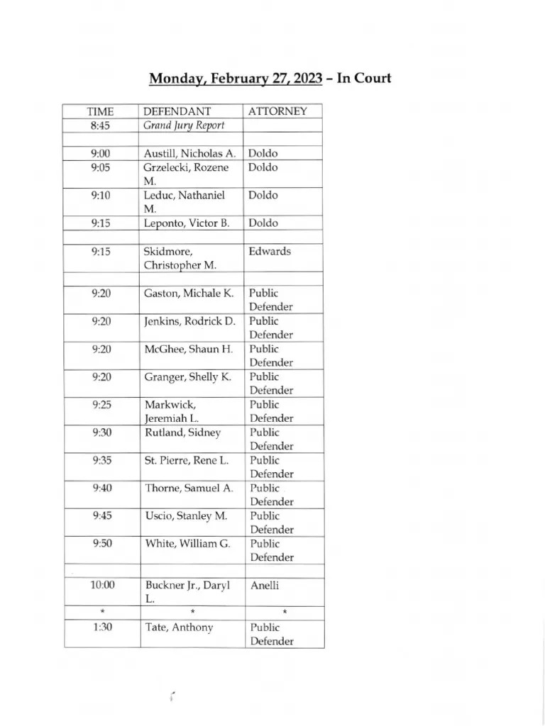 Jefferson County Court Calendar Feb. 27, 2023 PDF